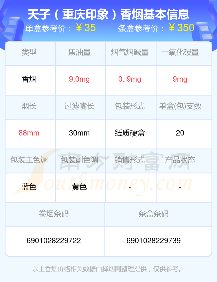 擇煙網(wǎng)為大家盤點(diǎn)了三十到五十元左右的天子香煙,有以下這些:
