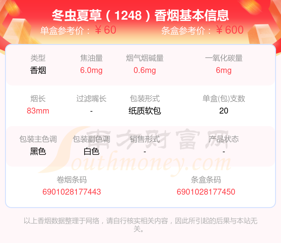 以上香煙數(shù)據(jù)整理于網(wǎng)絡(luò),請(qǐng)自行核實(shí)相關(guān)內(nèi)容,因此所引起的后果與本站無(wú)關(guān)。