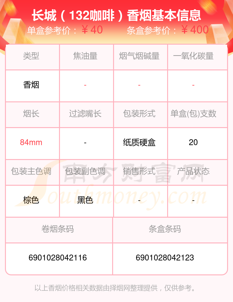 以上香煙價格相關數(shù)據(jù)由擇煙網(wǎng)整理提供,僅供參考。