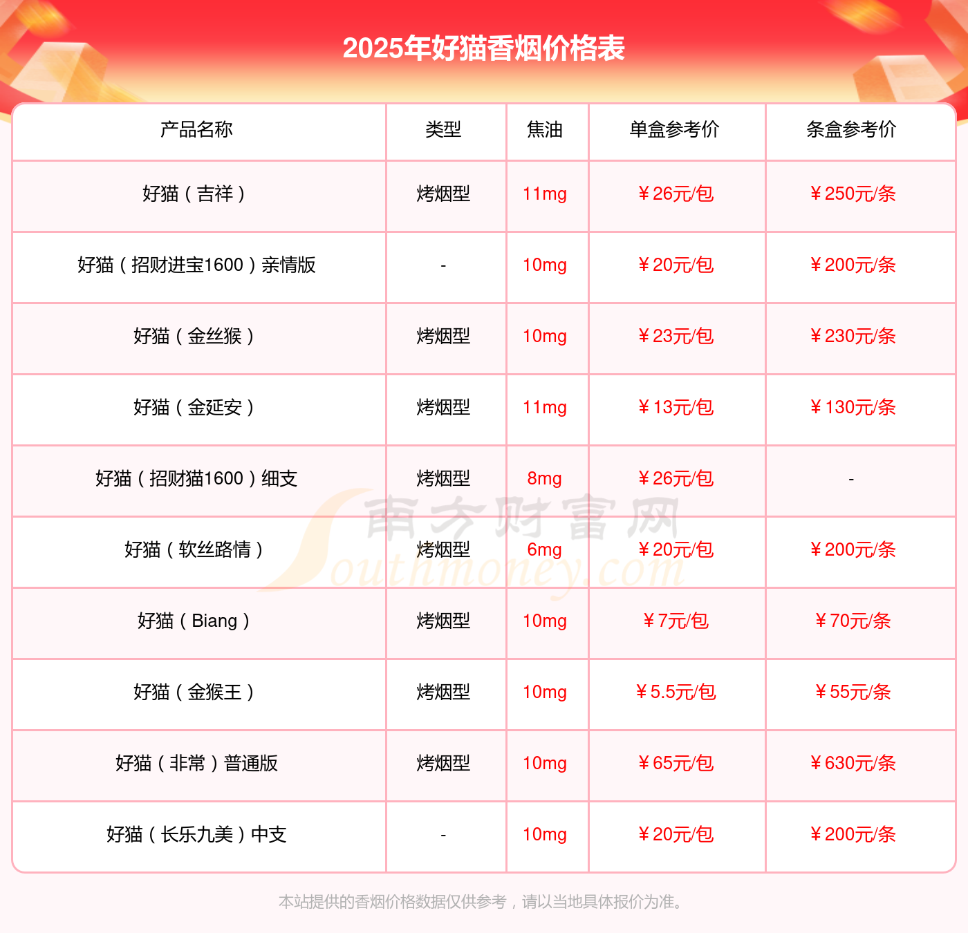 以上香煙價格相關數據由擇煙網整理提供,僅供參考。