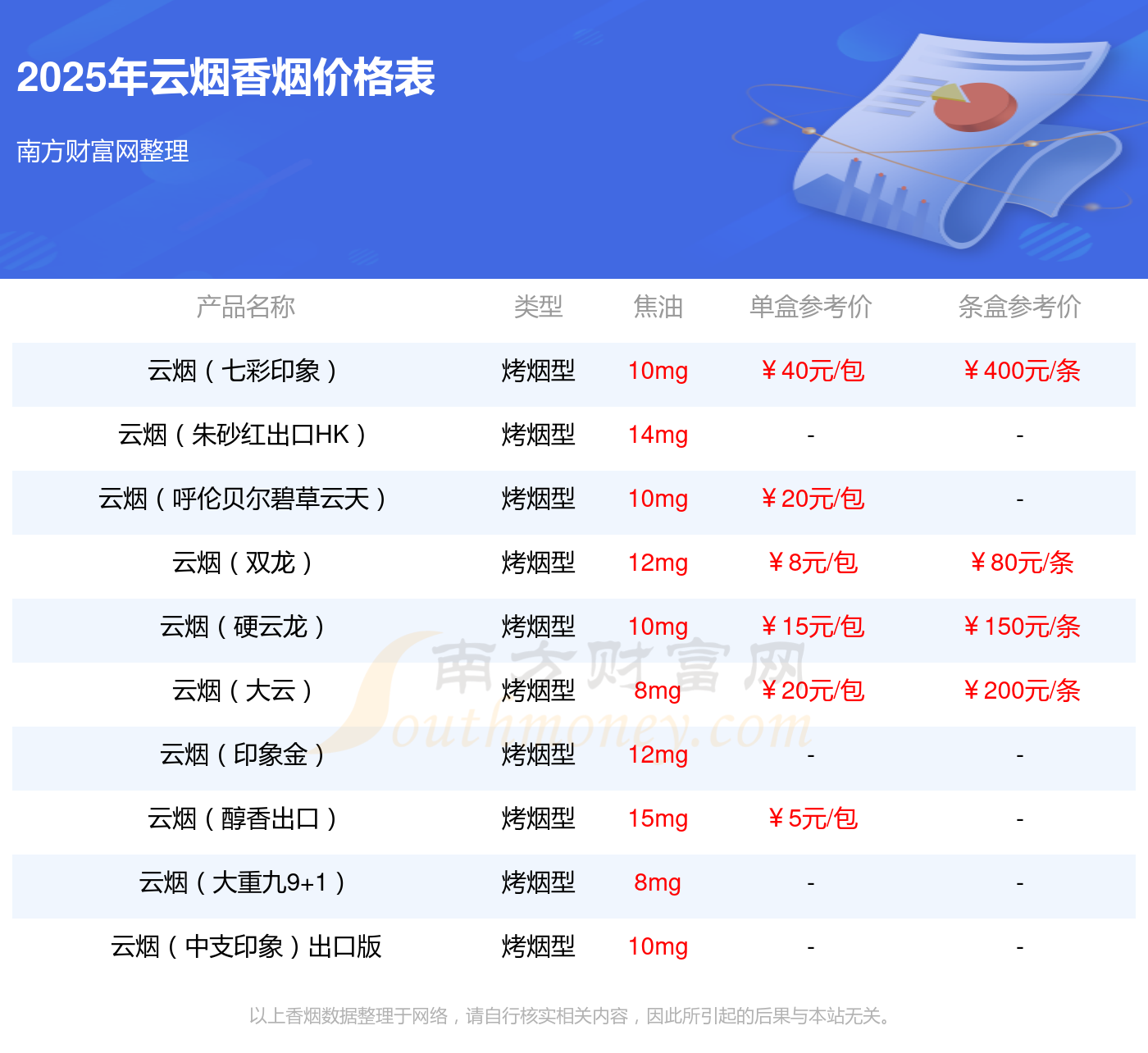 以上香煙數(shù)據(jù)整理于網(wǎng)絡(luò),請自行核實相關(guān)內(nèi)容,因此所引起的后果與本站無關(guān)。