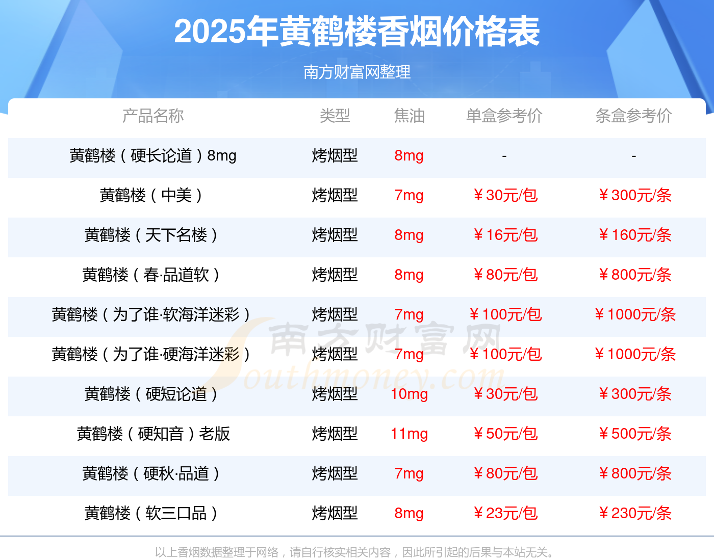 以上香煙數(shù)據(jù)整理于網(wǎng)絡(luò),請自行核實(shí)相關(guān)內(nèi)容,因此所引起的后果與本站無關(guān)。