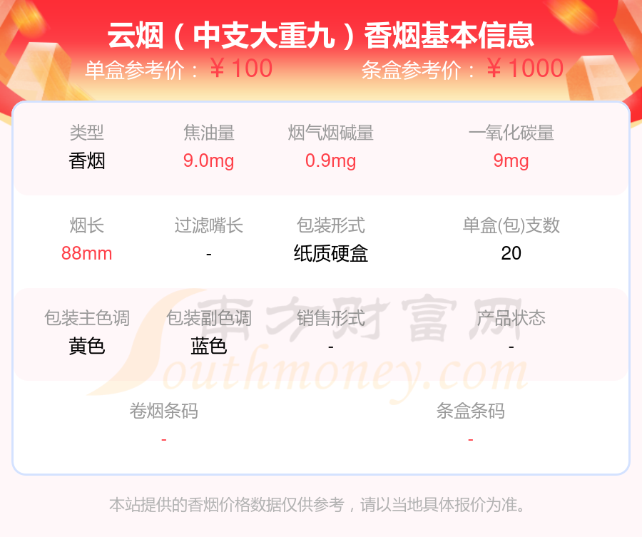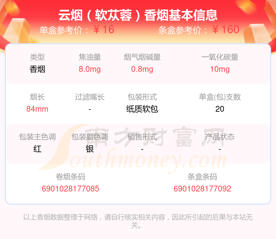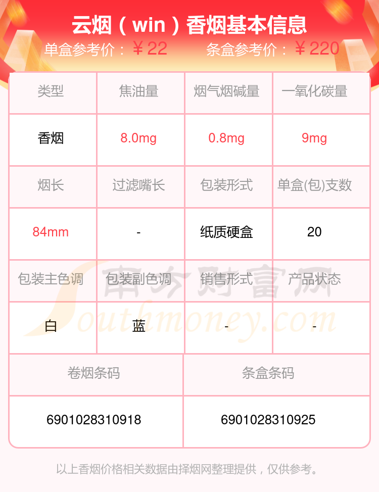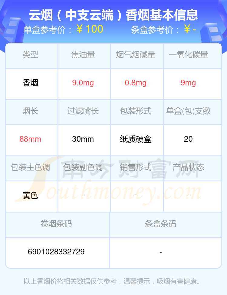 以上香煙價格相關(guān)數(shù)據(jù)僅供參考,溫馨提示,吸煙有害健康。