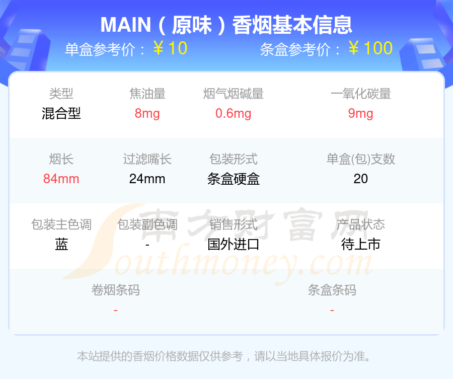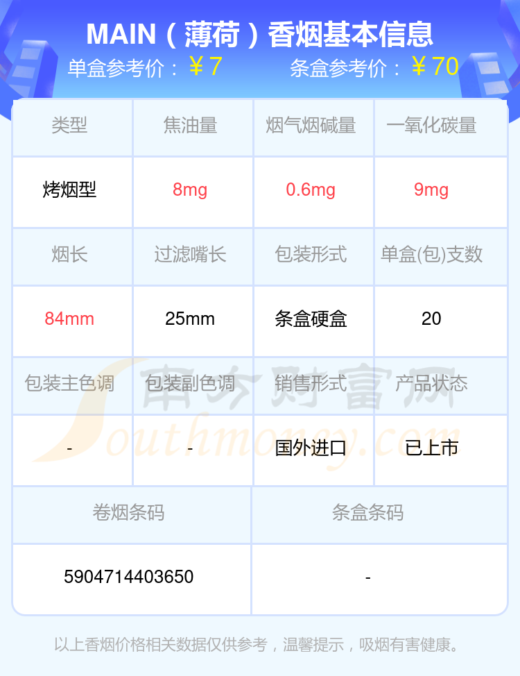 擇煙網(wǎng)為大家盤點了MAIN香煙尼古丁低于10mg的煙,有以下這些: