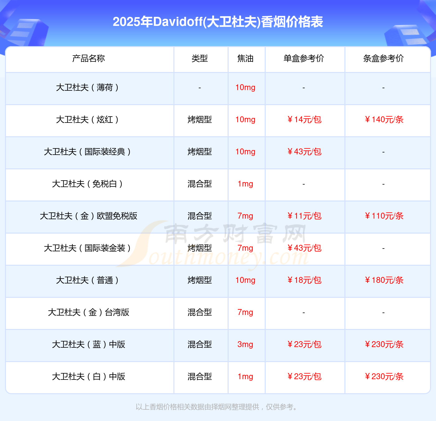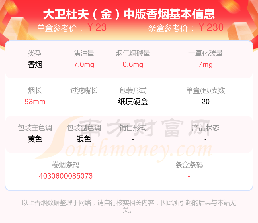 大衛(wèi)杜夫(金)中版整條參考價(jià):230元