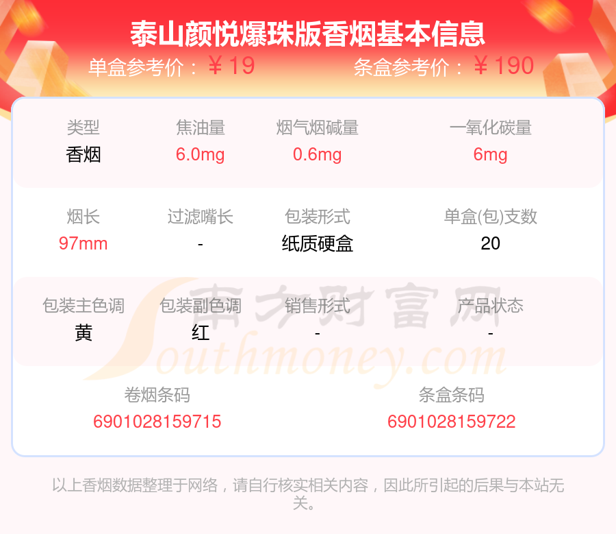 泰山顏悅爆珠版單盒參考價(jià):19元