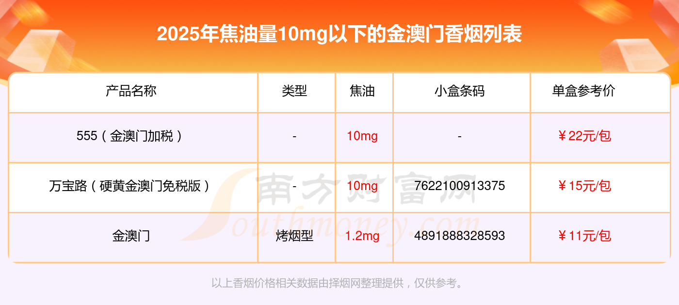 焦油量10mg以下的金澳門香煙有哪些?擇煙網(wǎng)為大家整理盤點,分別有: