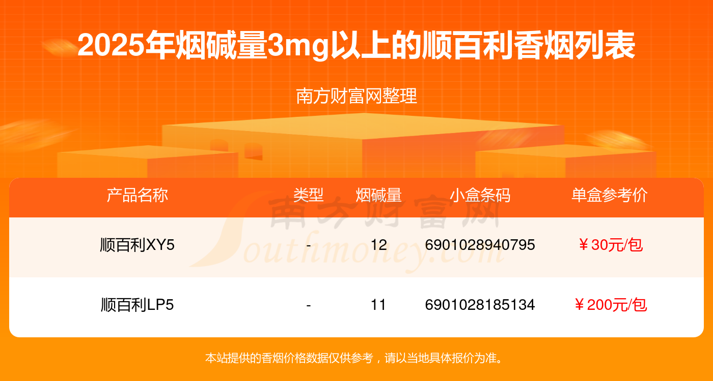 擇煙網(wǎng)為大家盤(pán)點(diǎn)了順百利香煙煙堿量3mg以上的煙,有以下這些: