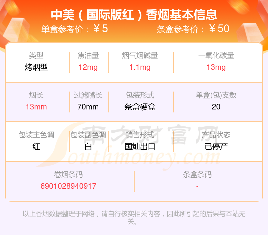 中美(硬藍(lán)12mg)參考價(jià)5元/包、中美(國(guó)際版紅)參考價(jià)5元/包等。