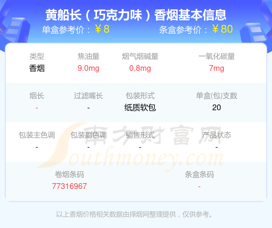 船長(zhǎng)(蘋果薄荷味)參考價(jià)13.0元/包、黃船長(zhǎng)(巧克力味)參考價(jià)8.0元/包、皇家方舟(天堂茶)參考價(jià)10.0元/包等。