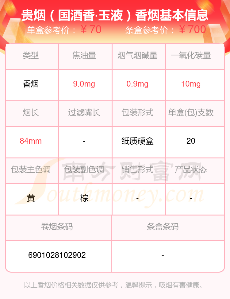 60元到70元的貴煙香煙有哪些?擇煙網(wǎng)為大家整理盤(pán)點(diǎn),有貴煙(國(guó)酒香·玉液)、貴煙(小國(guó)酒香)等,詳細(xì)價(jià)格如下: