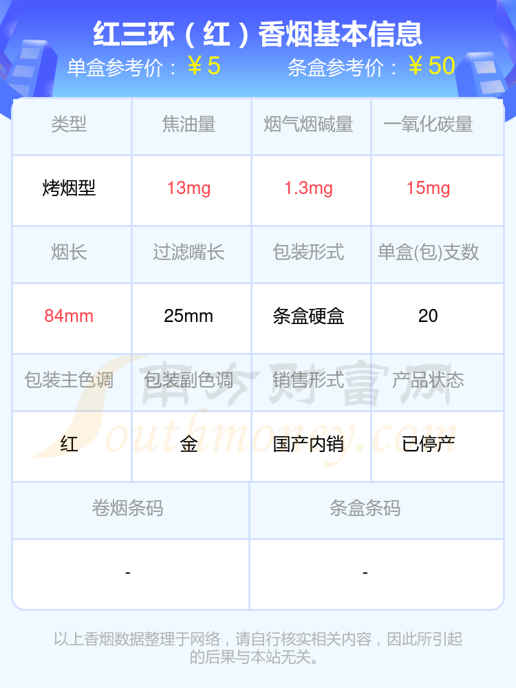 紅三環(huán)(紅)單盒參考價(jià):5元