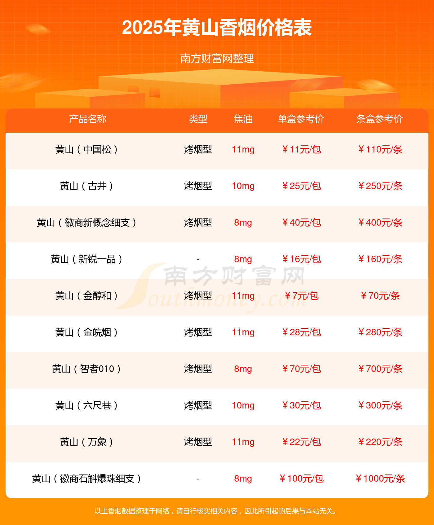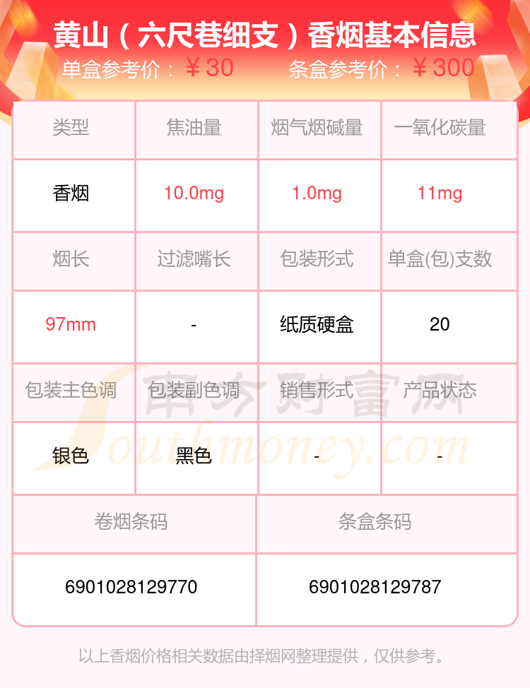 黃山(六尺巷細(xì)支)單盒參考價(jià):30元