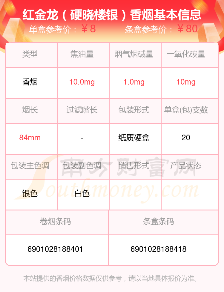 紅金龍(硬曉樓銀)單盒參考價:8元