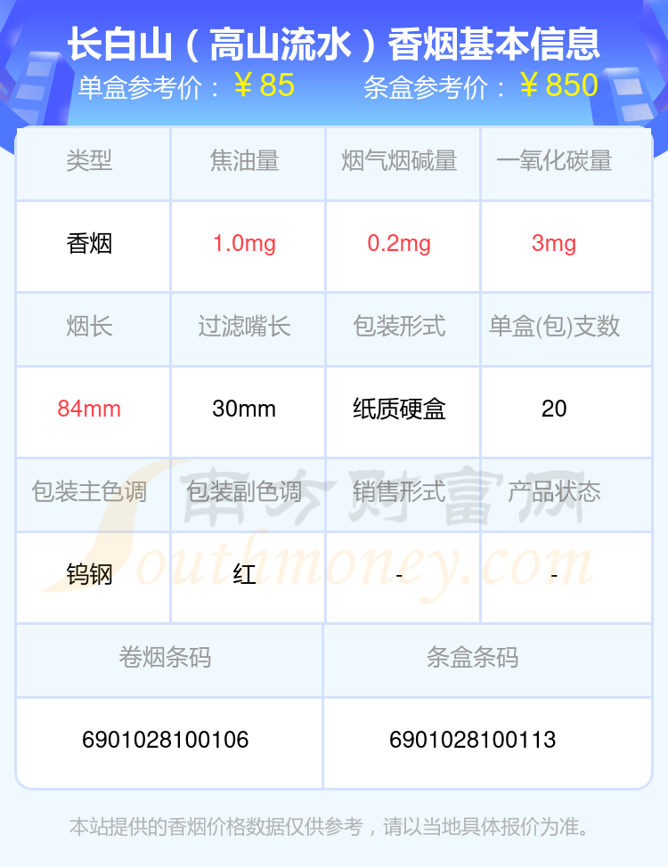 以上香煙價格相關(guān)數(shù)據(jù)僅供參考,溫馨提示,吸煙有害健康。