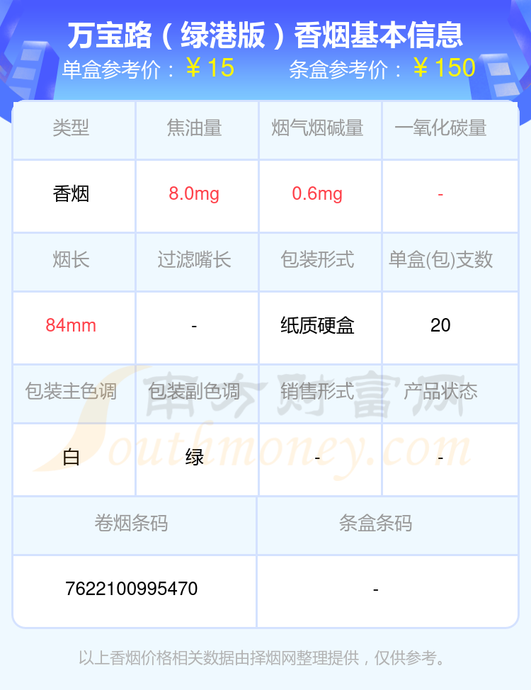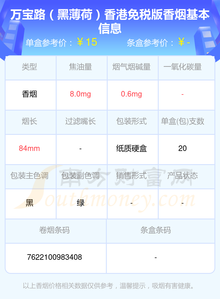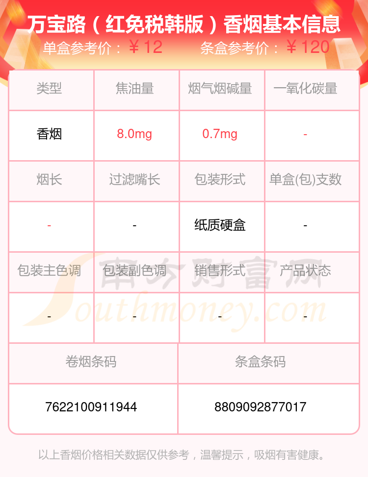 以上香煙價格相關數據僅供參考,溫馨提示,吸煙有害健康。