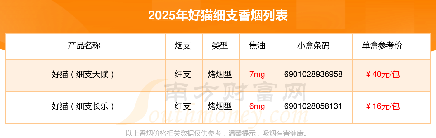 擇煙網(wǎng)為大家盤點(diǎn)了好貓香煙細(xì)支的,分別有好貓(細(xì)支天賦)、好貓(細(xì)支長(zhǎng)樂(lè))等,詳細(xì)價(jià)格如下: