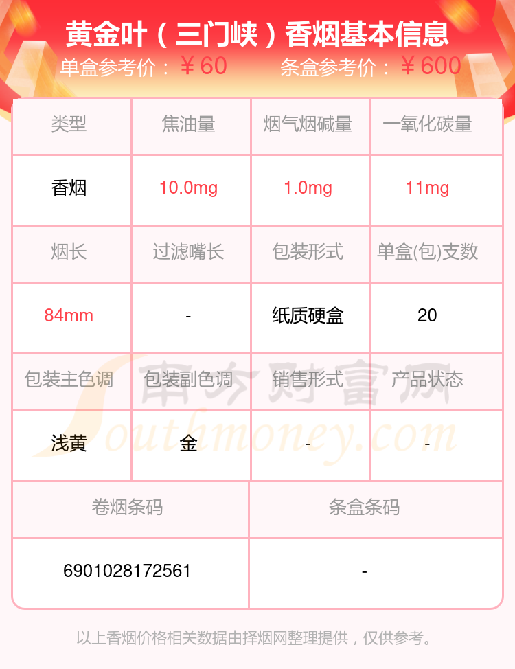 “黃金葉”品牌卷煙于1951年創(chuàng)牌投產(chǎn),由“金葉”更名而來“黃金葉”現(xiàn)為河南中煙旗下的重點(diǎn)品牌。