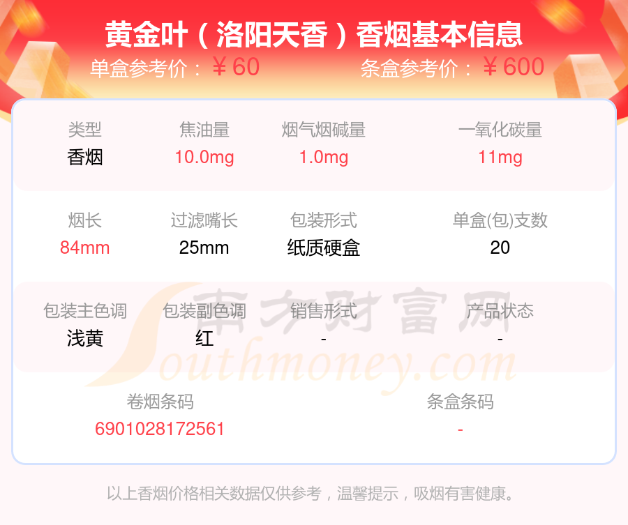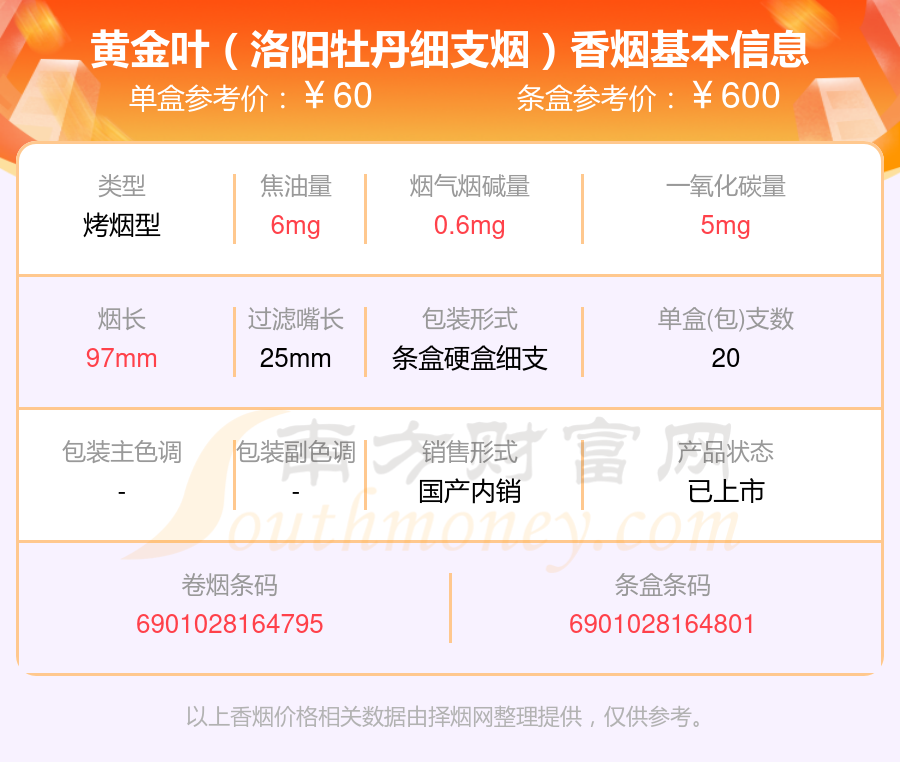 9、黃金葉(洛陽牡丹細(xì)支煙)