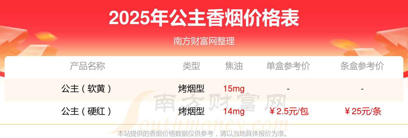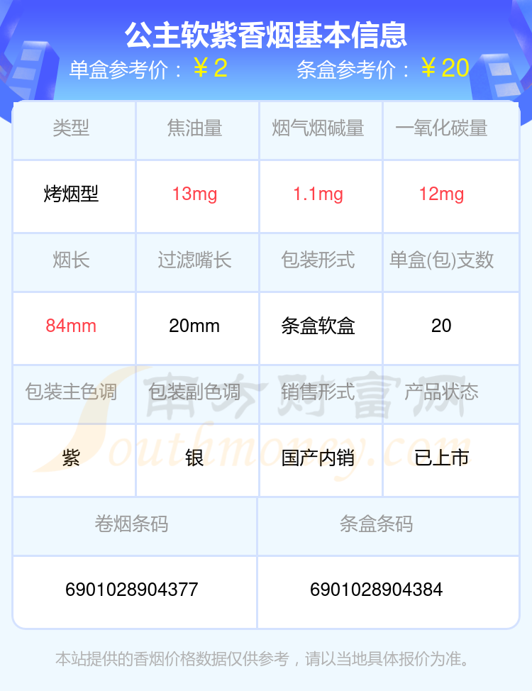 公主品牌其他香煙價(jià)格表