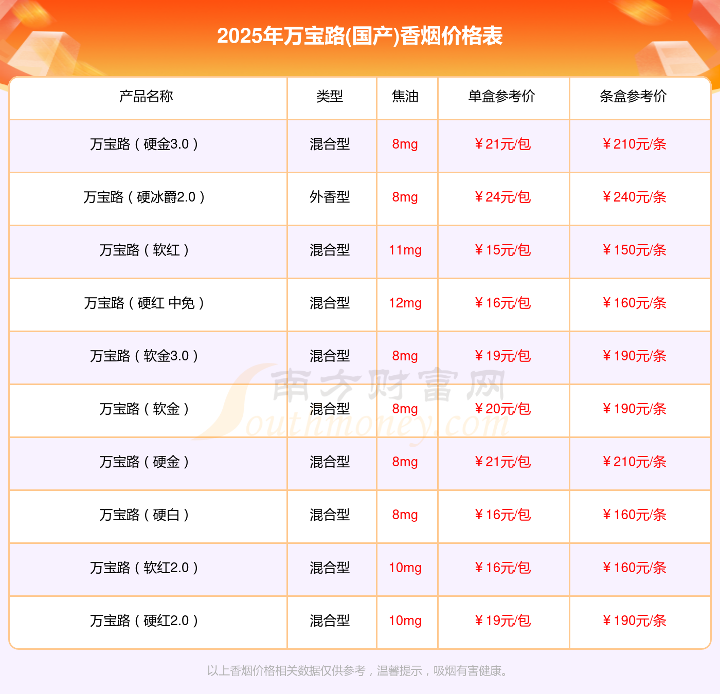 以上香煙價(jià)格相關(guān)數(shù)據(jù)由擇煙網(wǎng)整理提供,僅供參考。