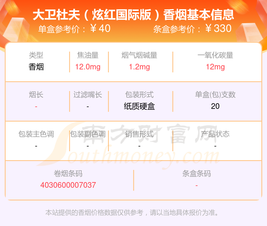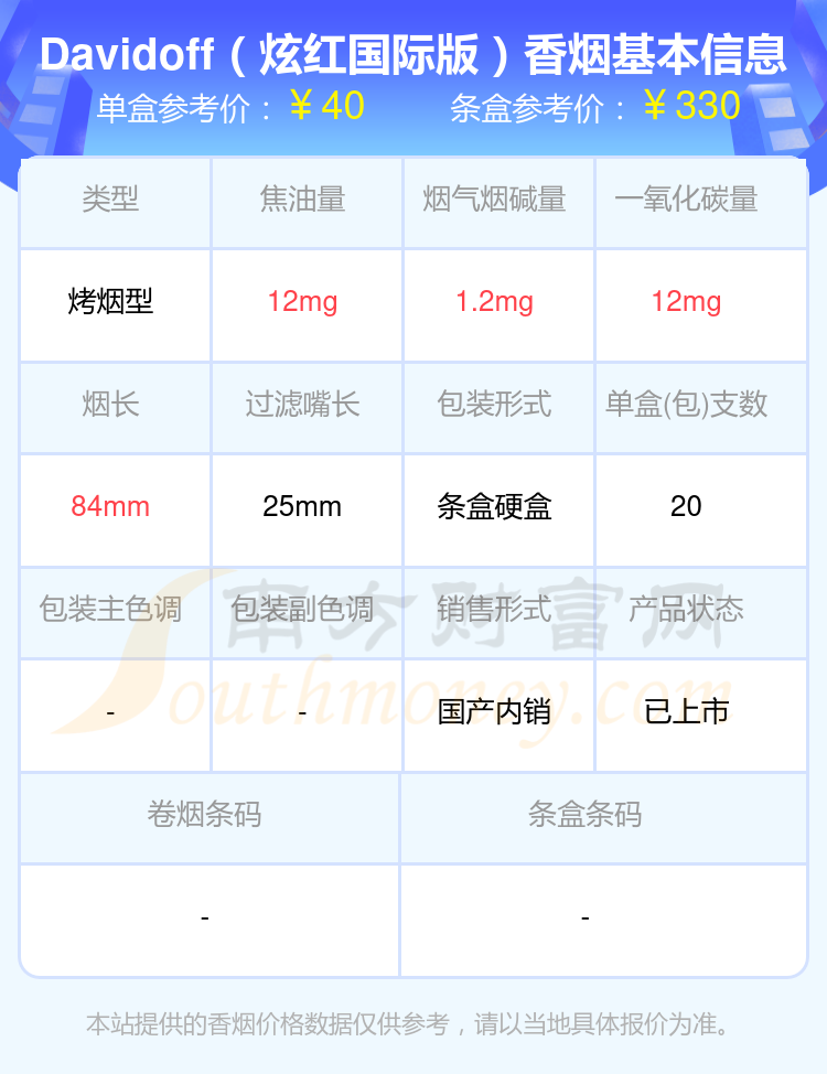 本站提供的香煙價格數(shù)據(jù)僅供參考,請以當(dāng)?shù)鼐唧w報價為準(zhǔn)。