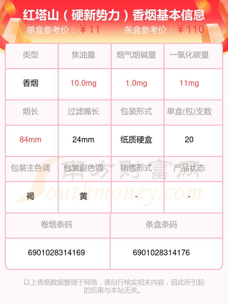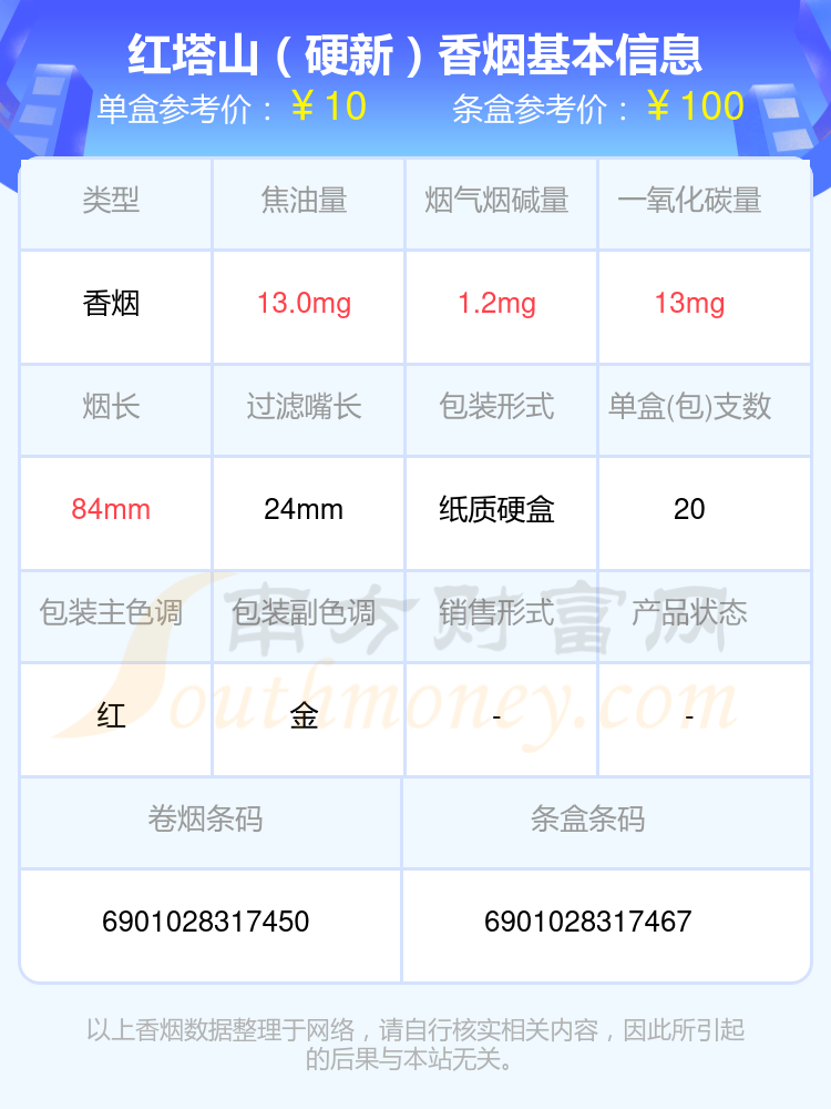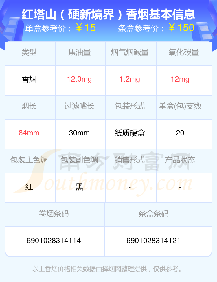 煙堿量低于5mg的紅塔山香煙有哪些?擇煙網(wǎng)為大家整理盤點(diǎn),有紅塔山(硬黑MY)、紅塔山(硬新)、紅塔山(硬人為峰)、紅塔山(硬新境界)、紅塔山(硬黑出口12mg)、紅塔山(硬出口)、紅塔山(專供出口)、紅塔山(硬經(jīng)典)、紅塔山(恭賀新禧)、紅塔山(硬新勢力)等,詳細(xì)價(jià)格如下: