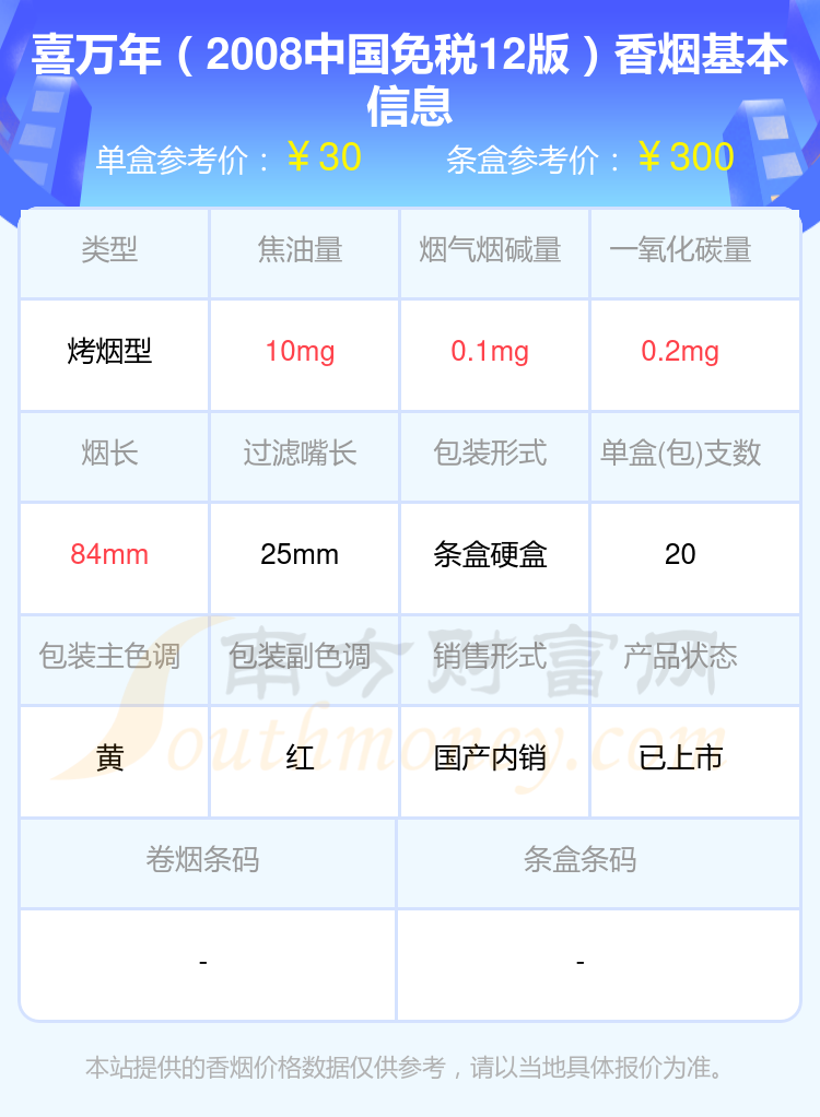 以上香煙價格相關(guān)數(shù)據(jù)僅供參考,溫馨提示,吸煙有害健康。