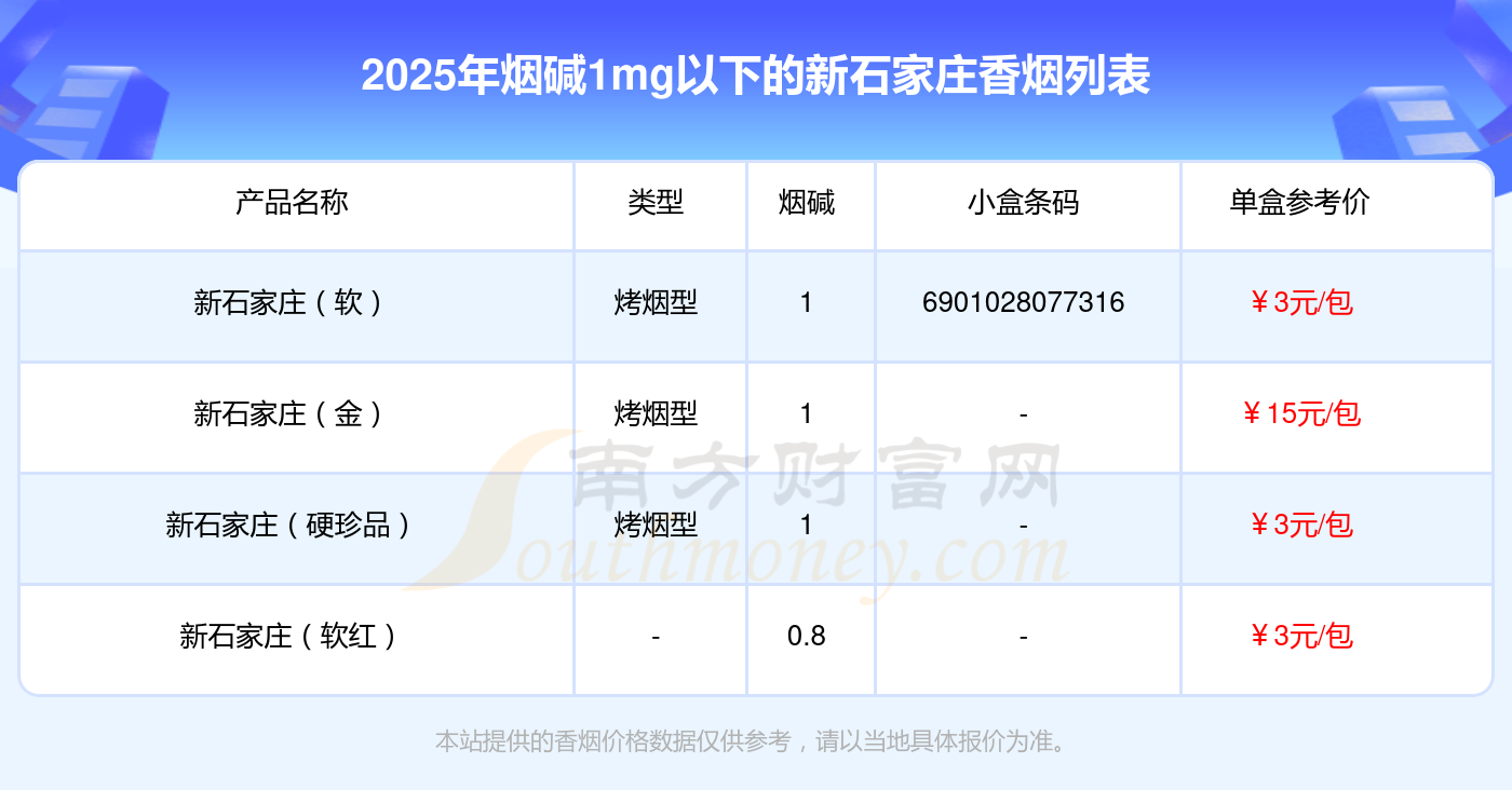 新石家莊(軟)參考價(jià)3元/包、新石家莊(金)參考價(jià)15元/包、新石家莊(硬珍品)參考價(jià)3元/包、新石家莊(軟紅)參考價(jià)3元/包等。