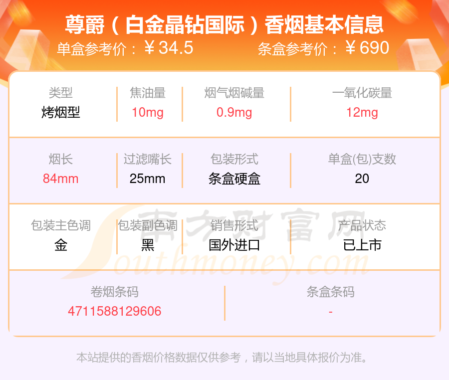 本站提供的香煙價(jià)格數(shù)據(jù)僅供參考,請(qǐng)以當(dāng)?shù)鼐唧w報(bào)價(jià)為準(zhǔn)。