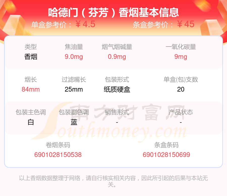 以上香煙數(shù)據(jù)整理于網(wǎng)絡(luò),請(qǐng)自行核實(shí)相關(guān)內(nèi)容,因此所引起的后果與本站無關(guān)。