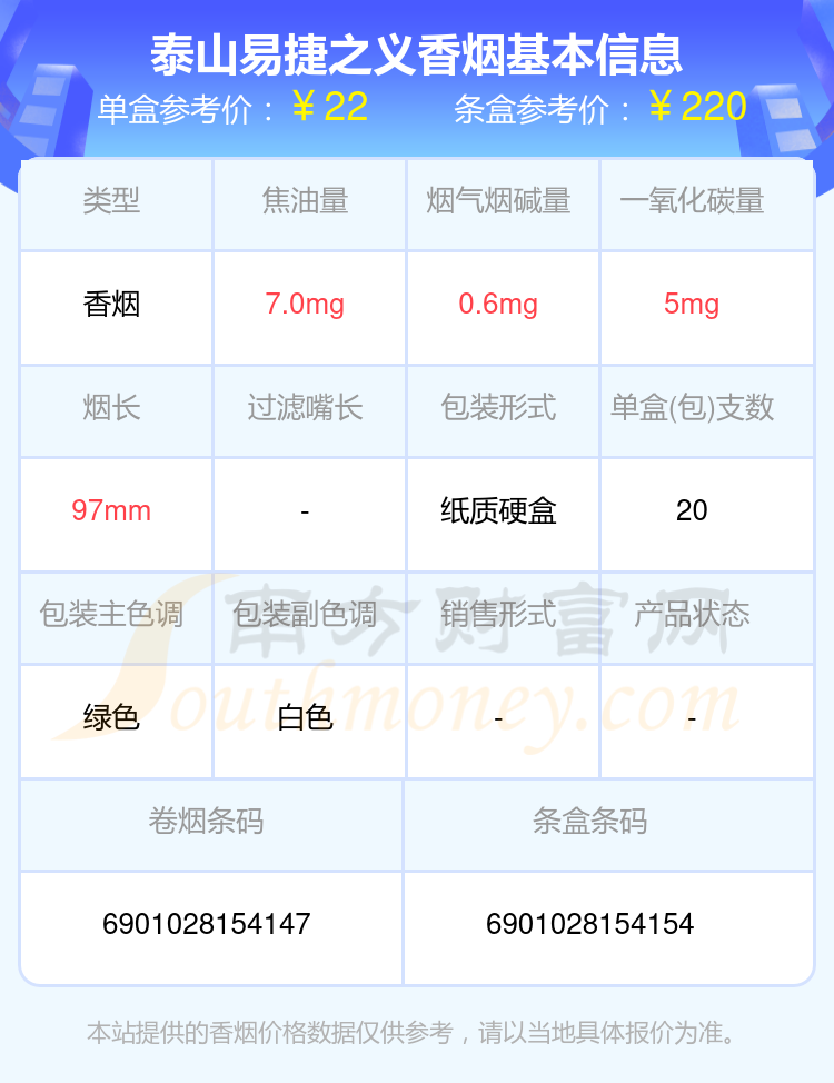 泰山易捷之義單盒參考價(jià):22元