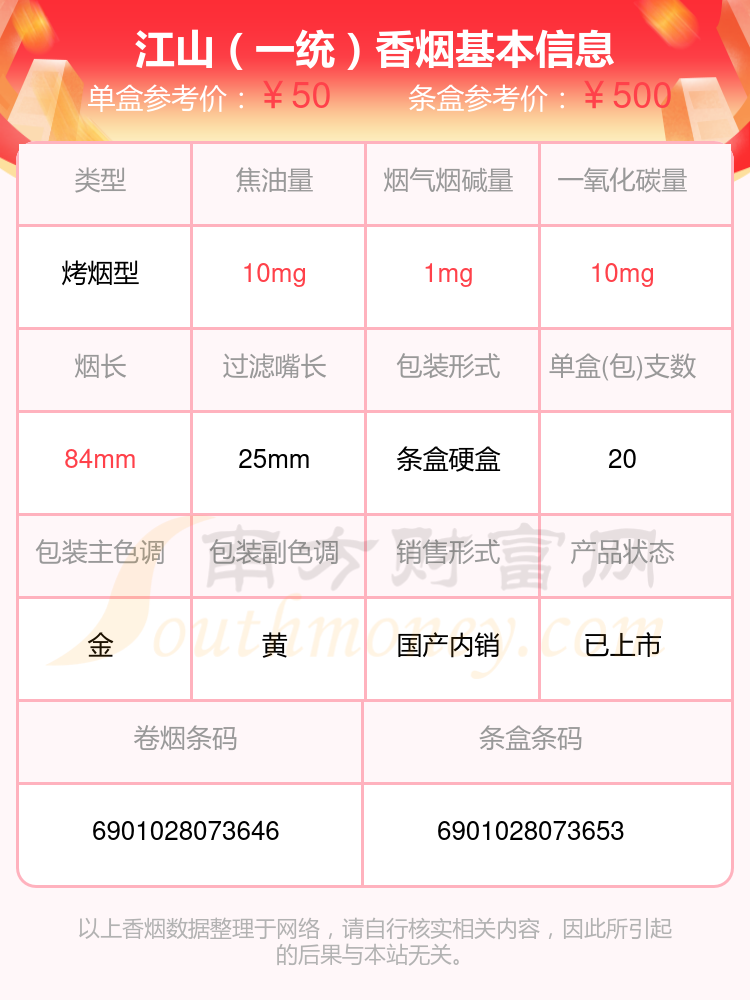 焦油量低于10mg的江山香煙有哪些?擇煙網(wǎng)為大家整理盤點,分別有:天子(千里江山中支)、江山(一統(tǒng))等,具體價格如下: