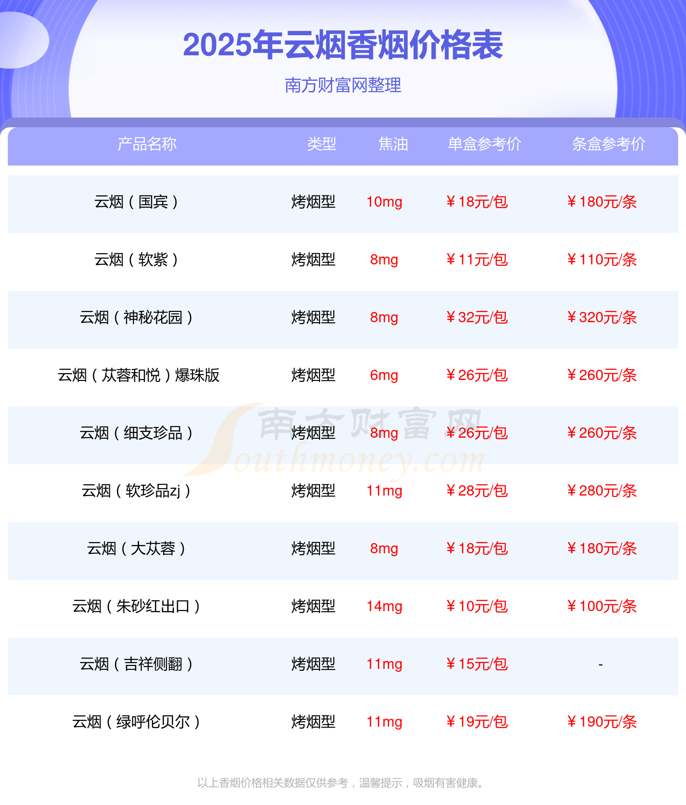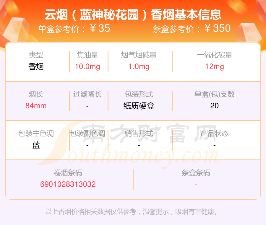 云煙(藍(lán)神秘花園)單盒參考價(jià):35元