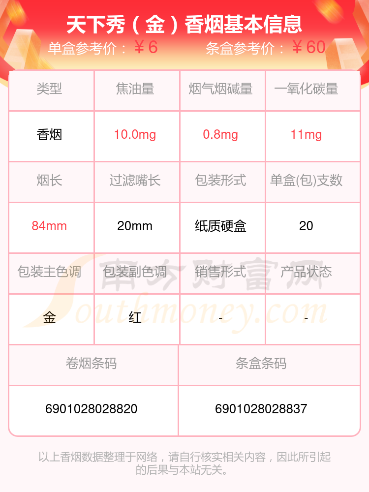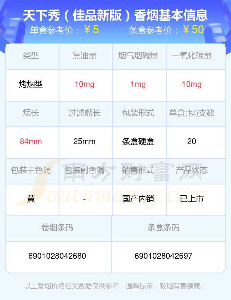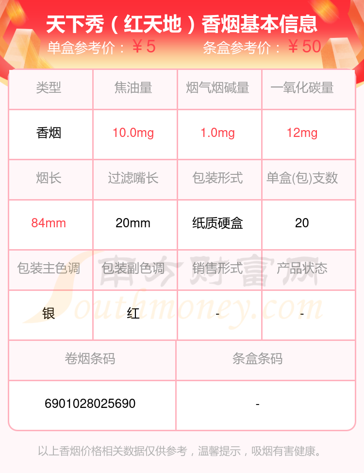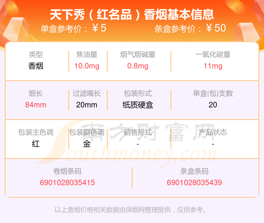 焦油量10mg以下的天下秀香煙有哪些?擇煙網(wǎng)為大家整理盤點(diǎn),分別有:天下秀(紅天地)、天下秀(金)、天下秀(紅名品)、天下秀(佳品新版)等,具體價(jià)格如下: