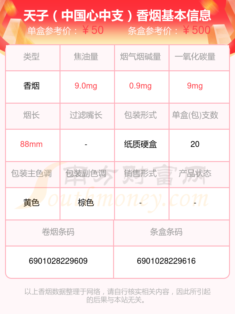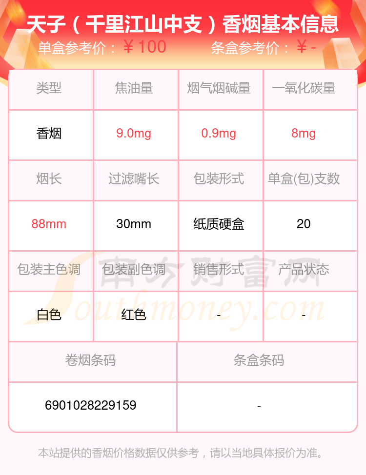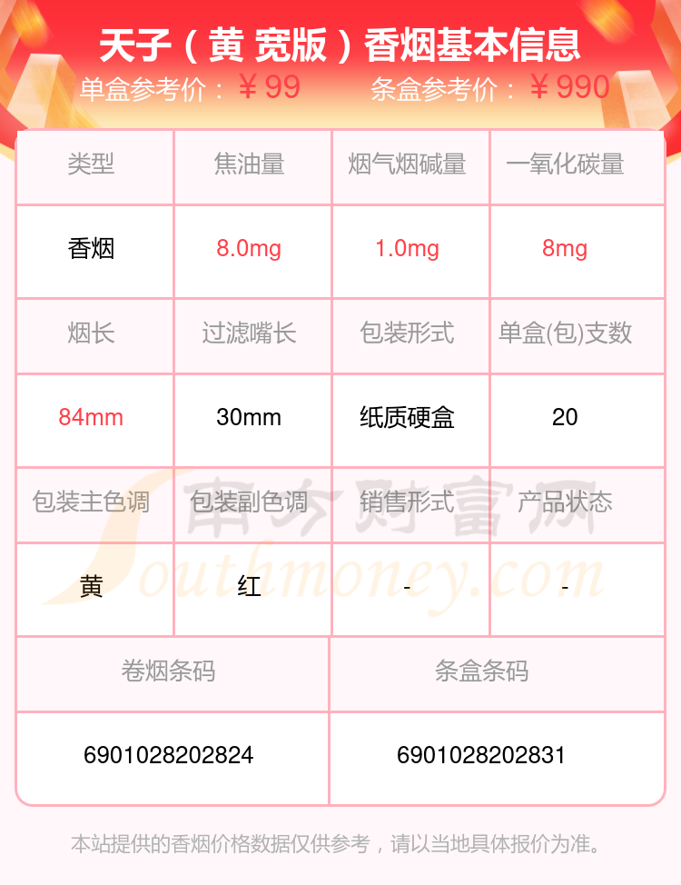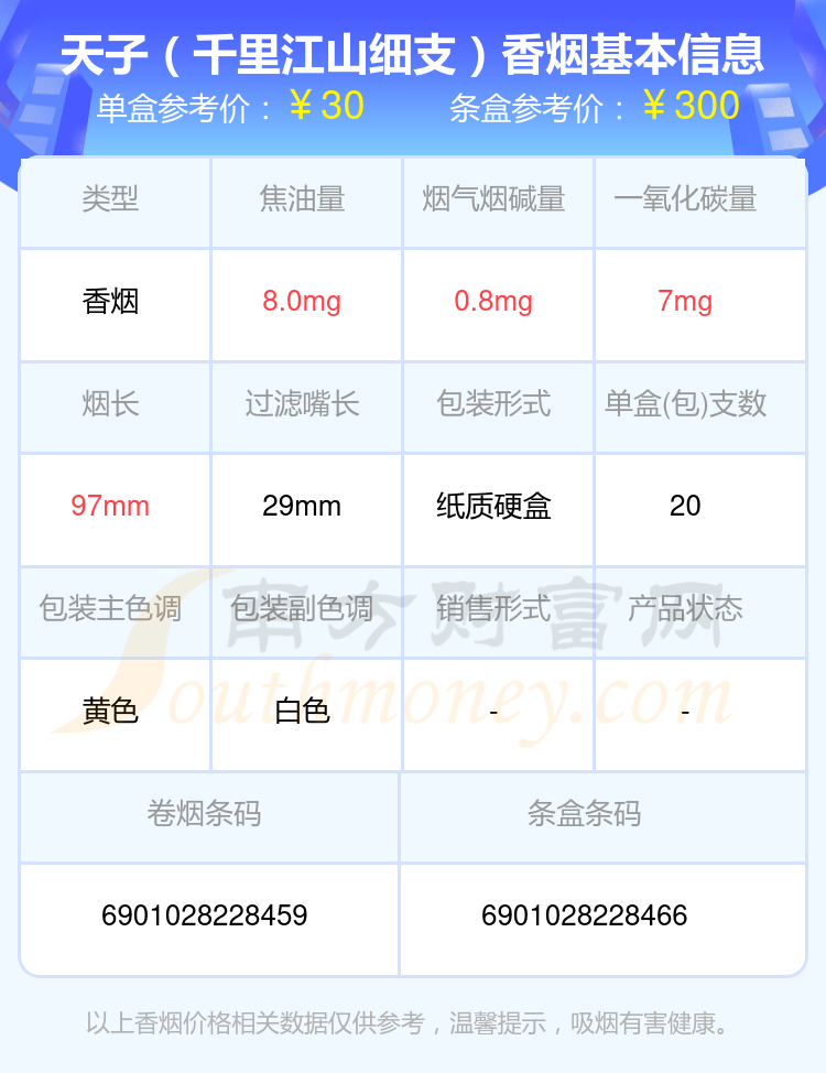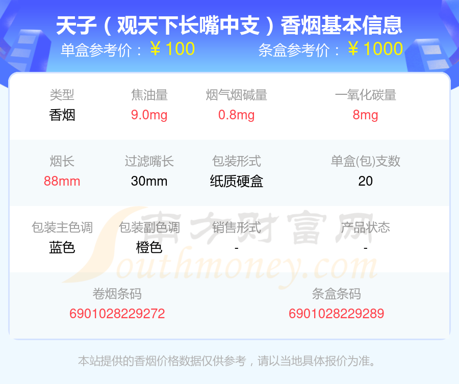 擇煙網(wǎng)為大家盤點(diǎn)了天子香煙焦油量8-15mg左右的,分別有天子(中國心中支)、天子(重慶印象)、天子(觀天下長嘴中支)、天子(千里江山中支)、天子(觀天下)、天子(黃中支)、天子(千里江山細(xì)支)、天子(黃 寬版)、天子(硬黃)、天子(黃)等,具體價(jià)格如下: