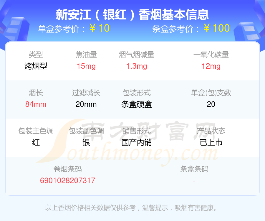 新安江香煙焦油量高于15mg的煙有新安江(軟)、新安江(藍)、新安江(銀紅)等,詳細價格如下: