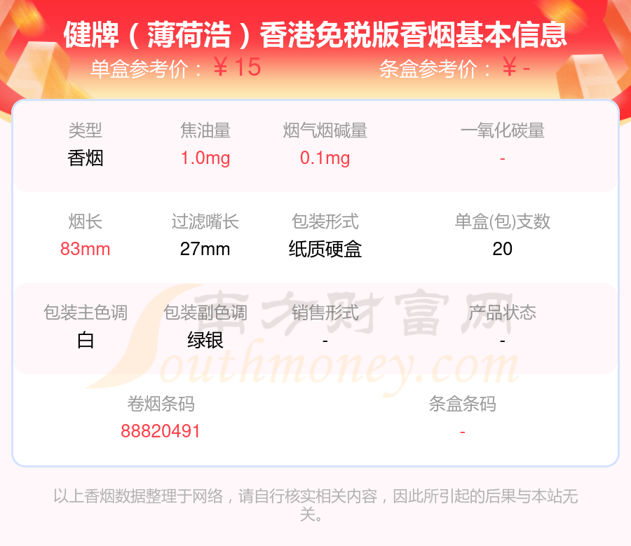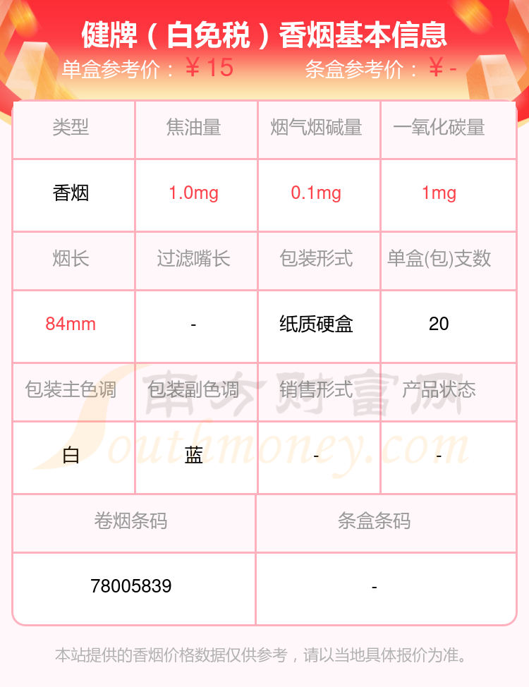 以上香煙價格相關(guān)數(shù)據(jù)僅供參考,溫馨提示,吸煙有害健康。