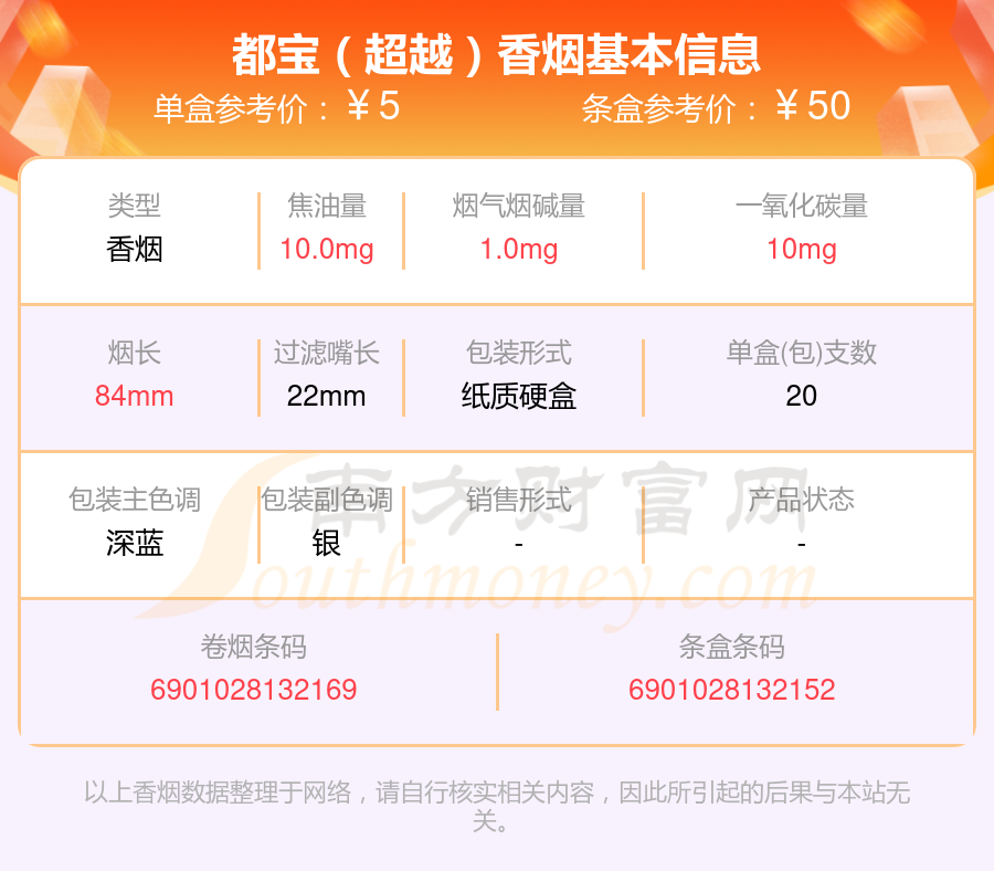都寶香煙煙堿1mg以下的煙分別有都寶(超越)參考價5.0元/包、都寶(國際)參考價10.0元/包、都寶(9mg)參考價5.0元/包、都寶(中支悠酷)參考價20元/包、都寶(悠酷中支)參考價20.0元/包、都寶(悠酷)參考價20元/包、都寶(16支醇和)參考價3.0元/包、都寶(醇和)參考價4.0元/包、都寶(8mg)參考價10.0元/包、都寶(16支純和)參考價3元/包等。
