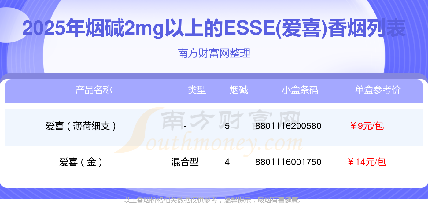 煙堿2mg以上的ESSE(愛喜)香煙有哪些?擇煙網(wǎng)為大家整理盤點,分別有: