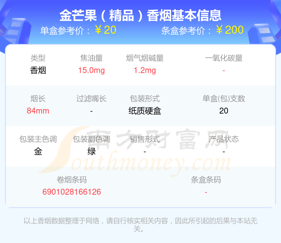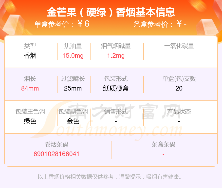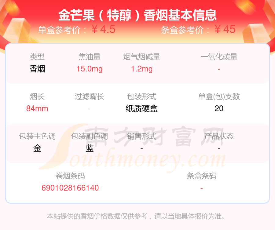 擇煙網(wǎng)為大家盤點(diǎn)了尼古丁5mg以下的金芒果香煙,分別有金芒果(特醇)、金芒果(精品)、金芒果(硬綠)、金芒果(盛世金典)等,具體價(jià)格如下: