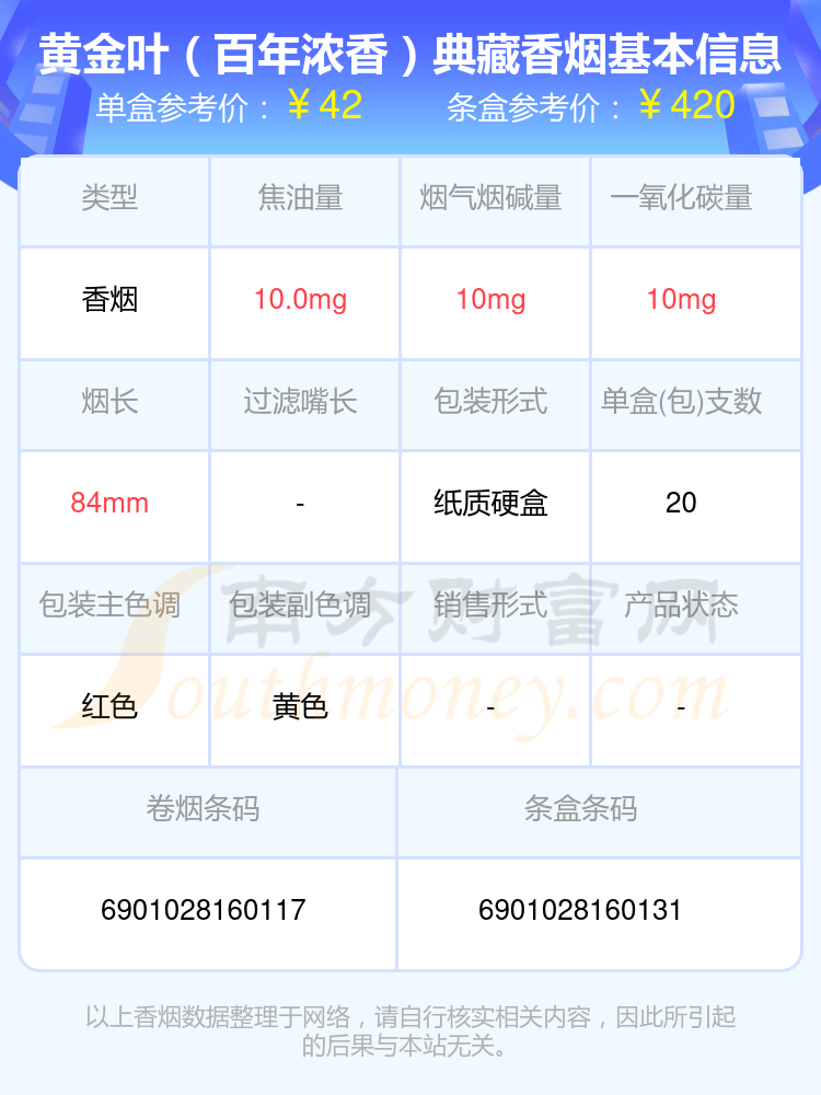 擇煙網(wǎng)為大家盤點了尼古丁量5mg以上的黃金葉香煙,有黃金葉(軟洛陽牡丹)、黃金葉(百年濃香)典藏等,詳細價格如下: