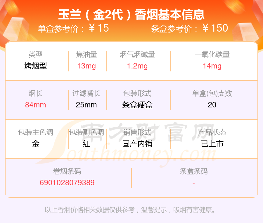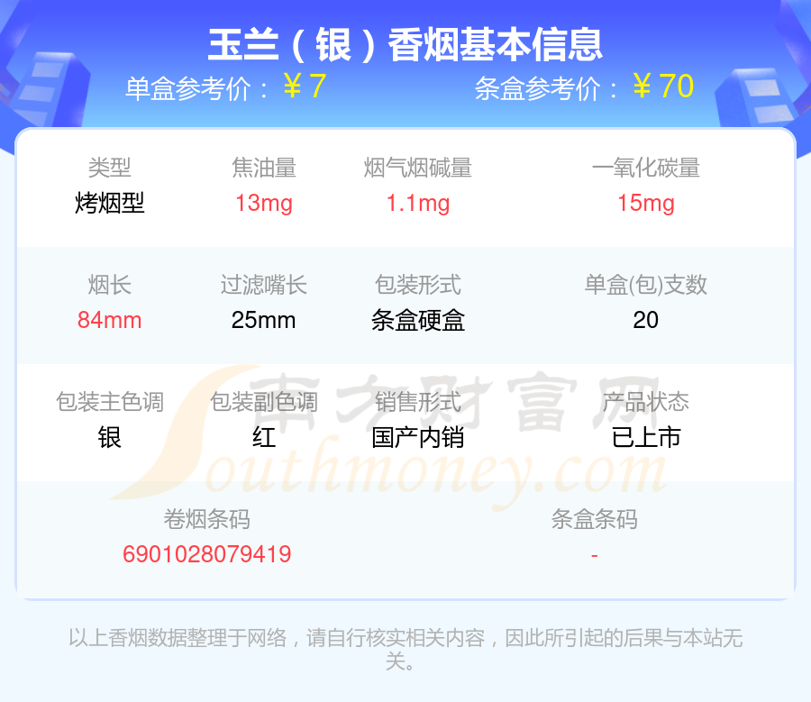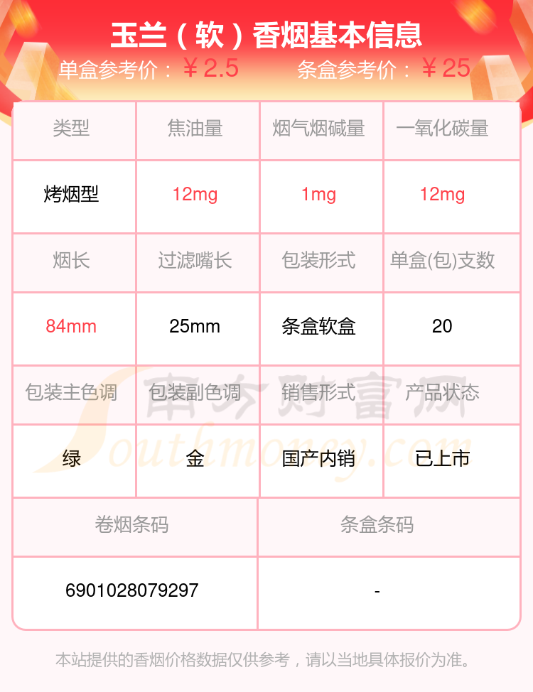 玉蘭(銀)參考價7元/包、玉蘭(金2代)參考價15元/包、玉蘭(軟)參考價2.5元/包等。