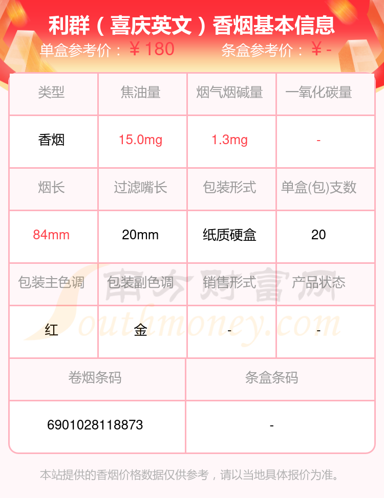 本站提供的香煙價格數(shù)據(jù)僅供參考,請以當(dāng)?shù)鼐唧w報價為準(zhǔn)。