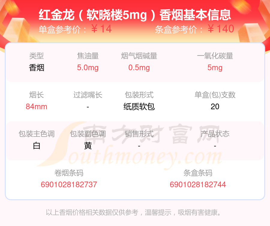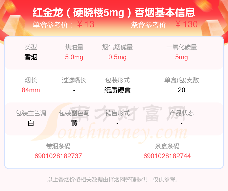 紅金龍(硬曉樓5mg)參考價(jià)13.0元/包、紅金龍(軟曉樓5mg)參考價(jià)14.0元/包等。