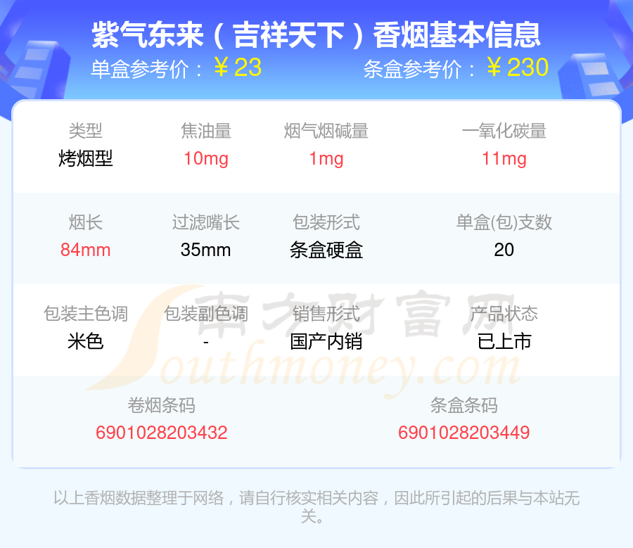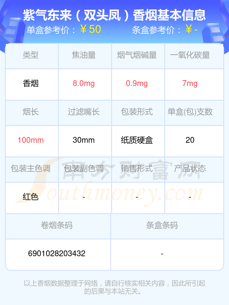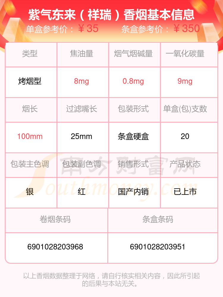 紫氣東來(雙頭鳳)參考價50.0元/包、紫氣東來(汾清香)參考價50元/包、紫氣東來(祥瑞)參考價35元/包、紫氣東來(硬紫)參考價25.0元/包、紫氣東來(六合同春)參考價25元/包、紫氣東來(吉祥天下)參考價23元/包等。