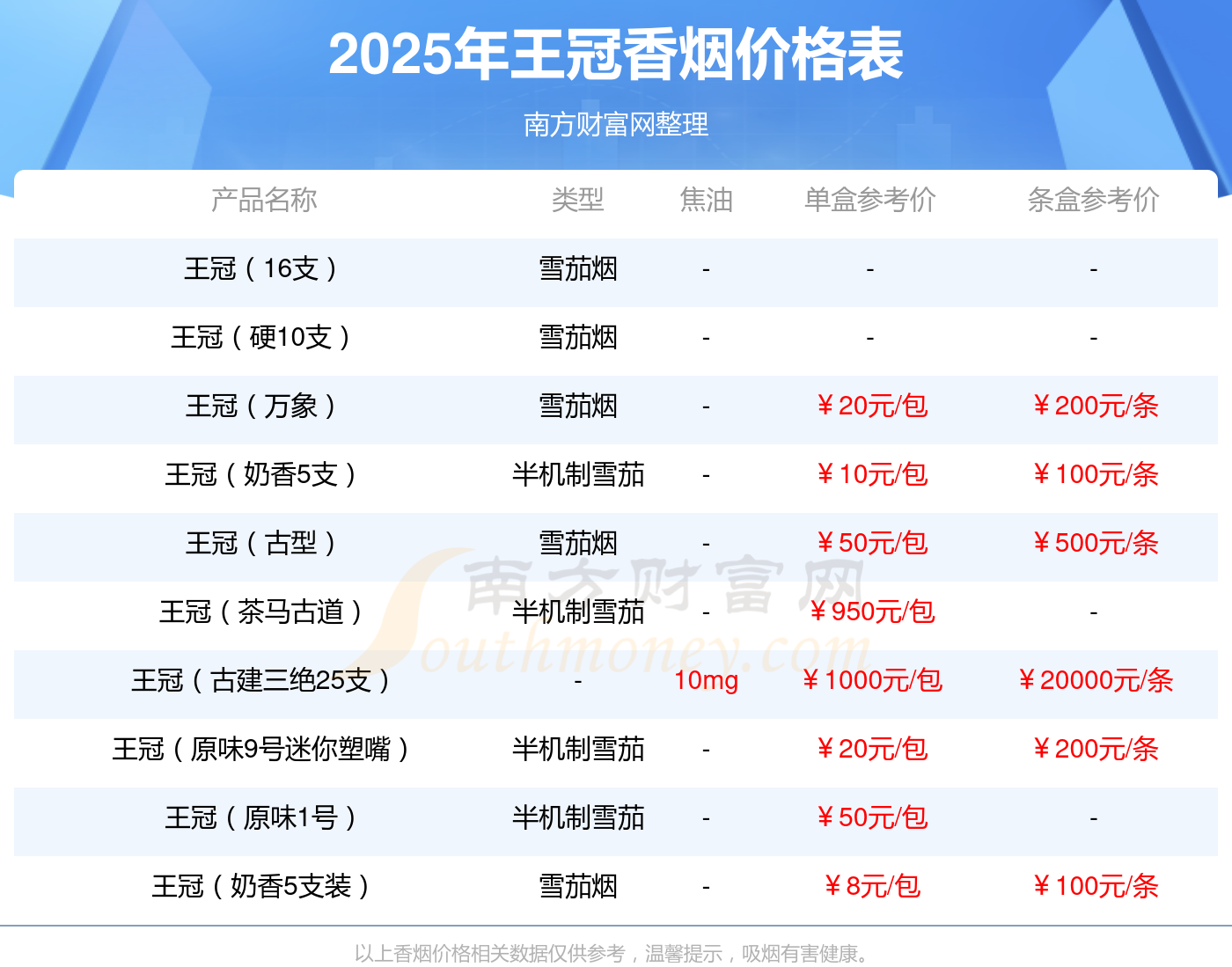 王冠(10支裝全葉卷)香煙基本信息