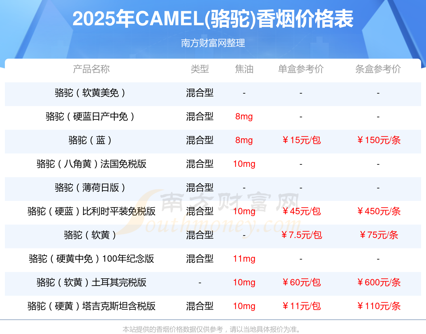 以上香煙價格相關(guān)數(shù)據(jù)僅供參考,溫馨提示,吸煙有害健康。