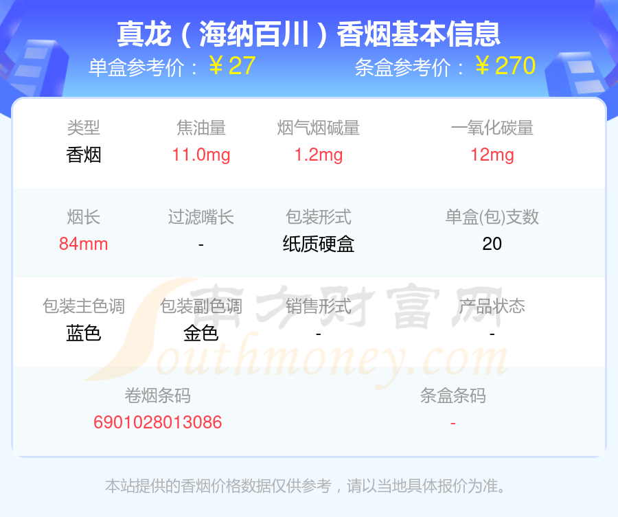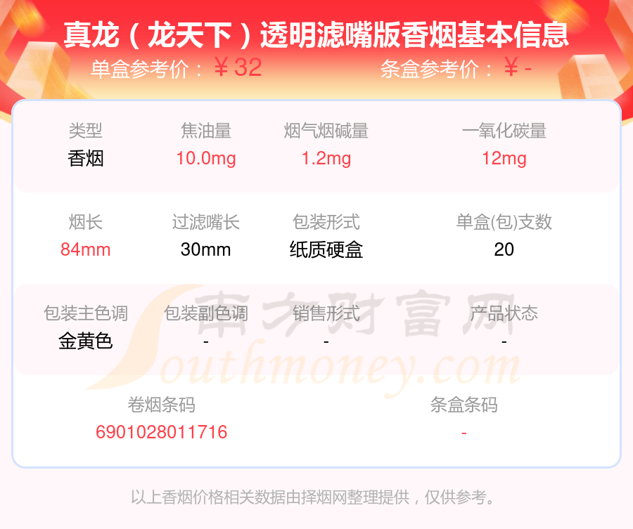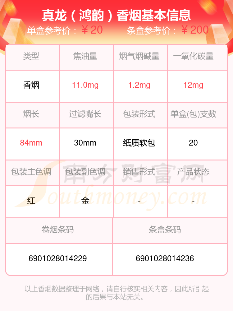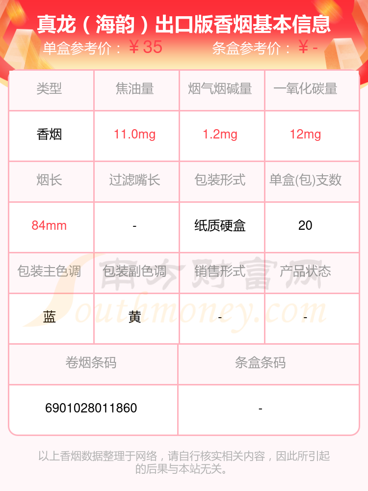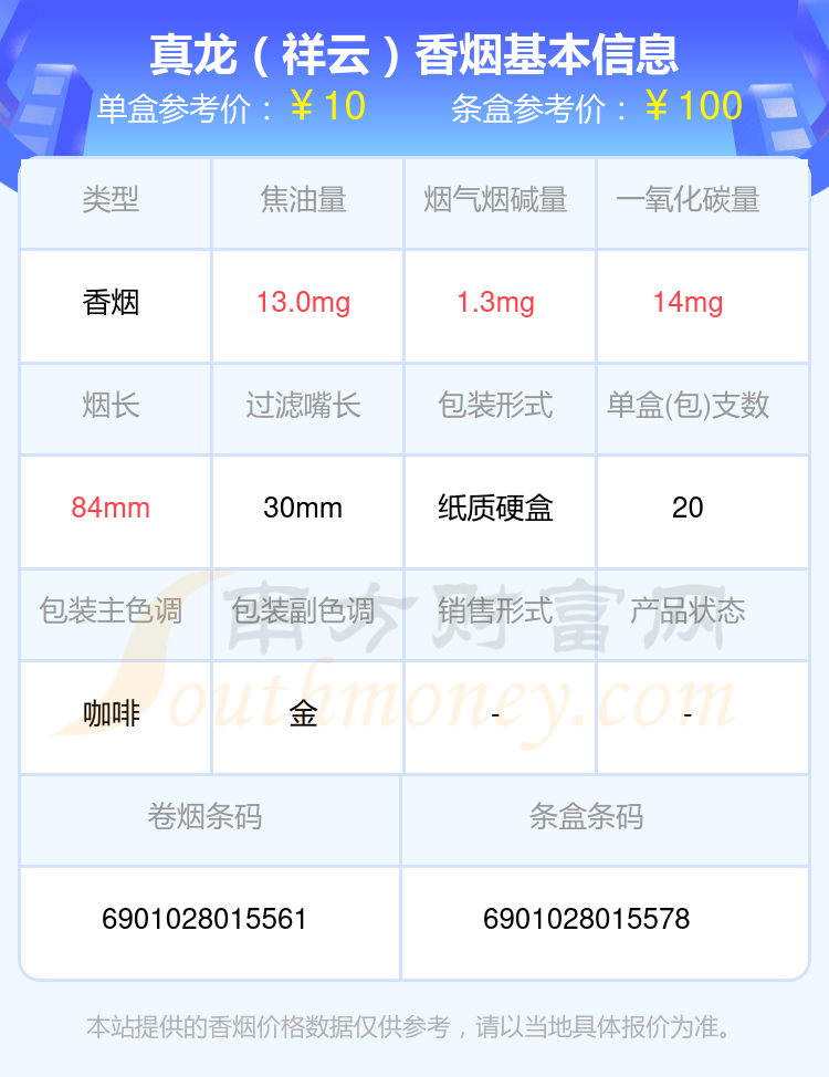 真龍香煙尼古丁1mg-2mg的煙有哪些?擇煙網(wǎng)為大家整理提供,分別有:真龍(天翔)、真龍(祥云)、真龍(鴻韻)、真龍(海韻)出口版、真龍(黃金甲)、真龍(靈韻)、真龍(龍?zhí)煜拢┩该鳛V嘴版、真龍(海韻)、真龍(海韻出口版)、真龍(海納百川)等,具體價(jià)格如下: