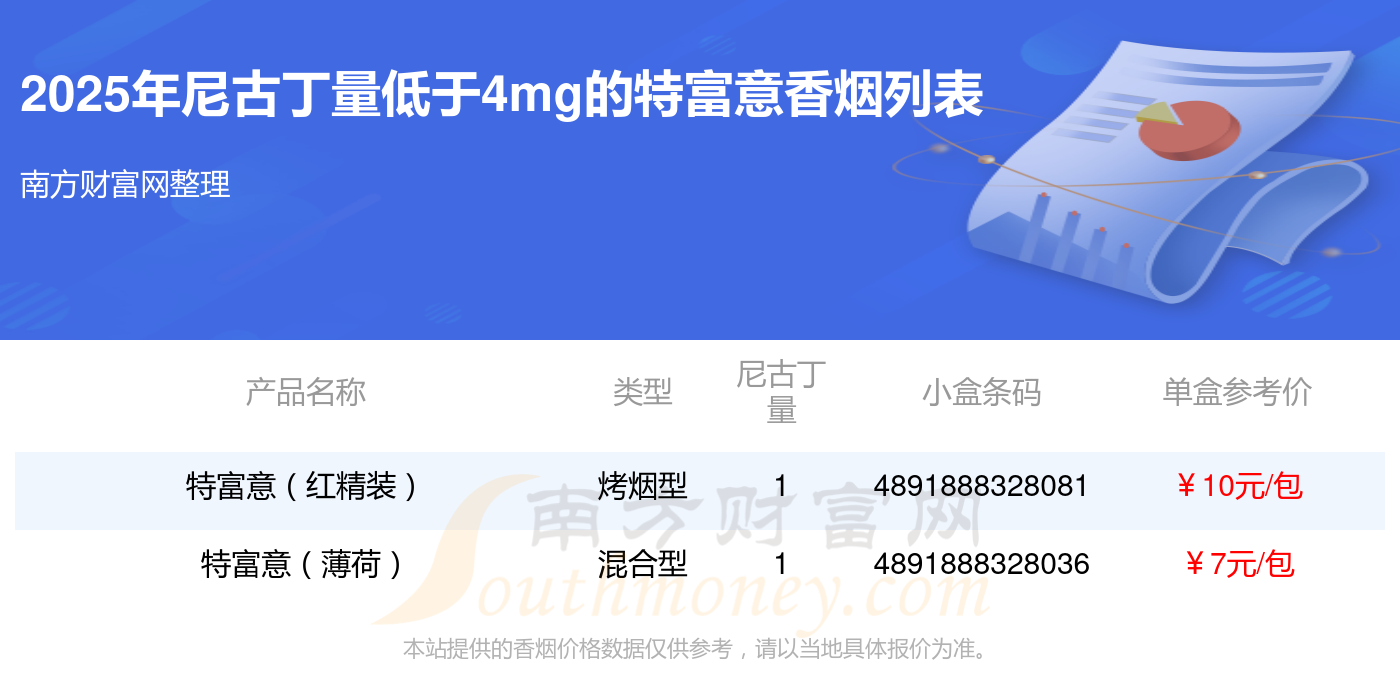 特富意(紅精裝)參考價(jià)10元/包、特富意(薄荷)參考價(jià)7元/包等。